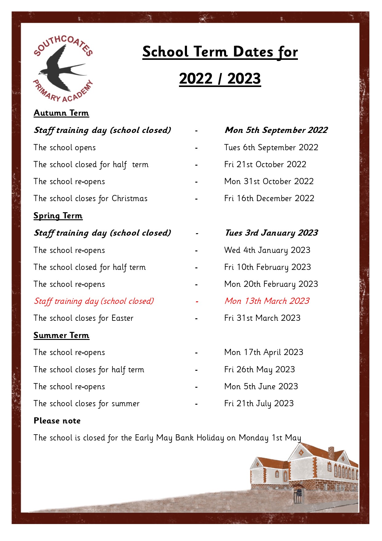 School Term Dates 2022-2023